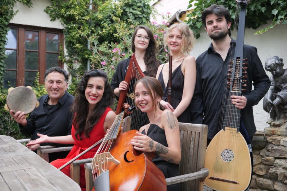 Maya Amir, Mezzosopran und künstlerische Leitung Darina Ablogina, Historische Flöten Christian Velasco Vázquez, Theorbe und Barockgitarre Beatriz Lopez Paz, Viola da Gamba Carolin Margraf, Doppelharfe Murat Coşkun, Percussion